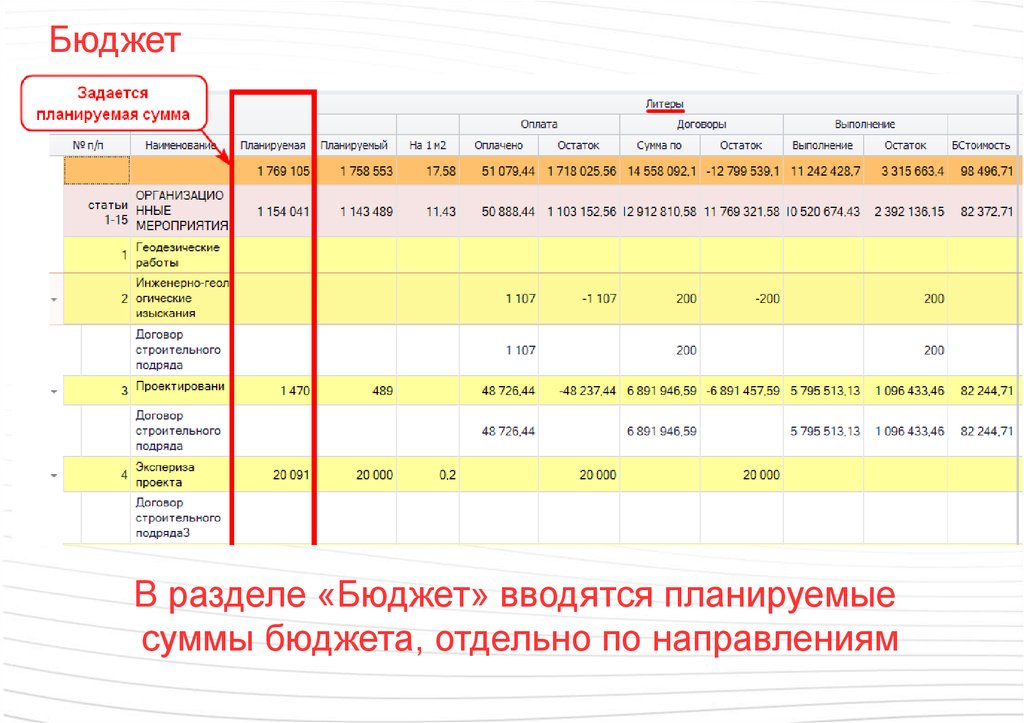 БюджетВ разделе «Бюджет» вводятся планируемые
