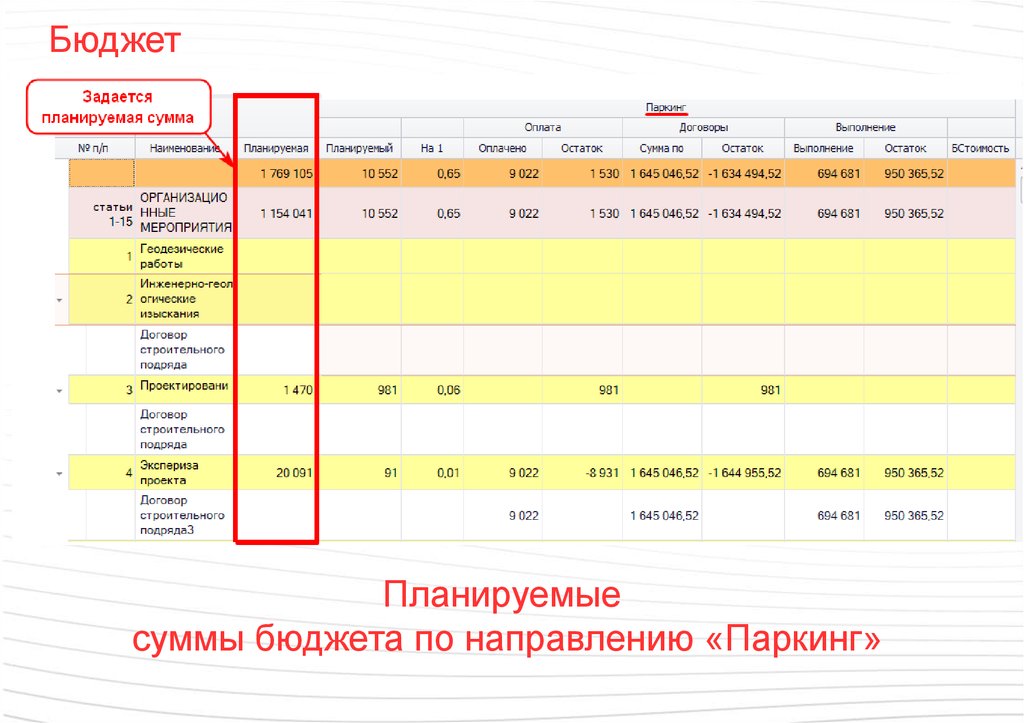 суммы бюджета по направлению «Паркинг»