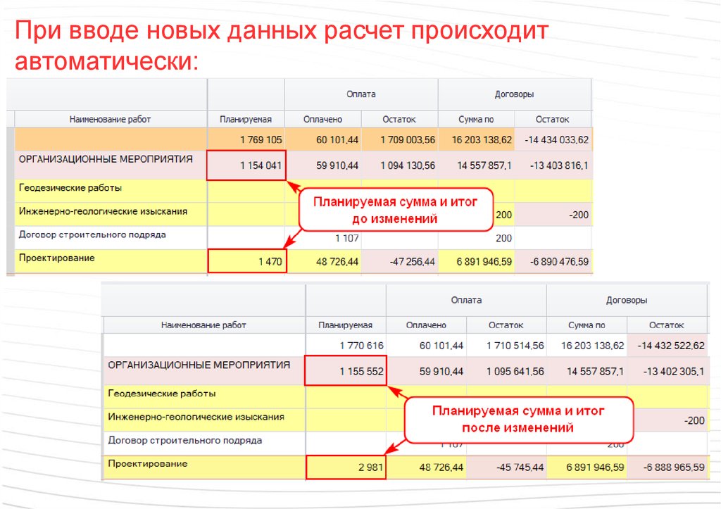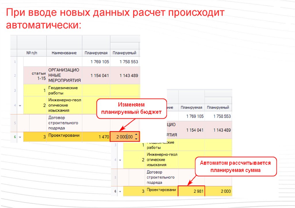 При вводе новых данных расчет происходитавтоматически: