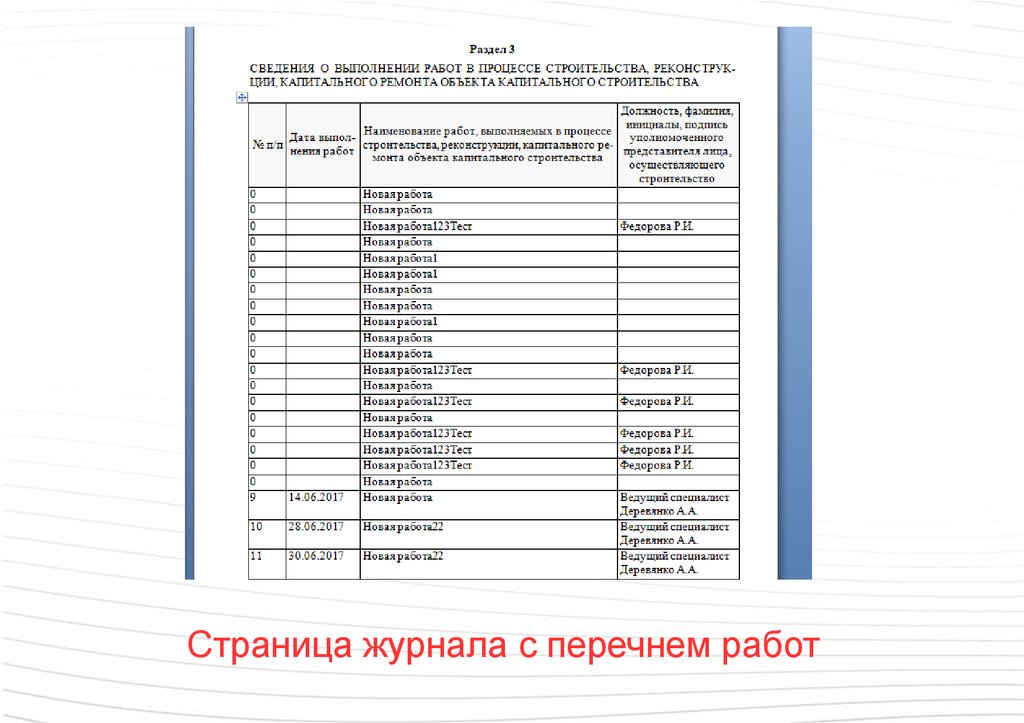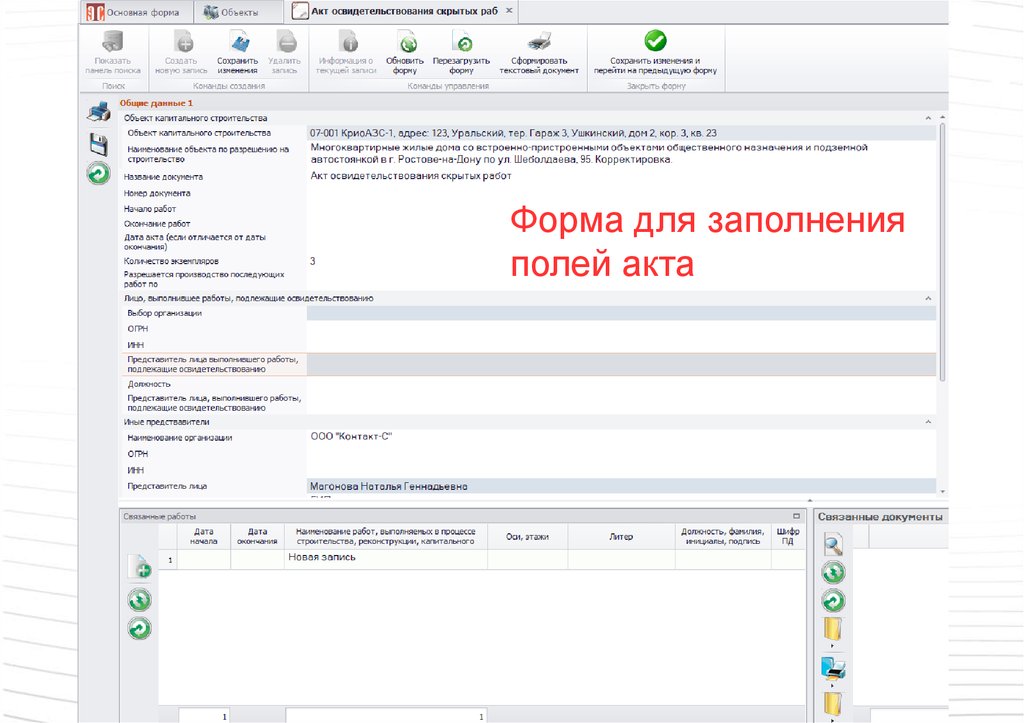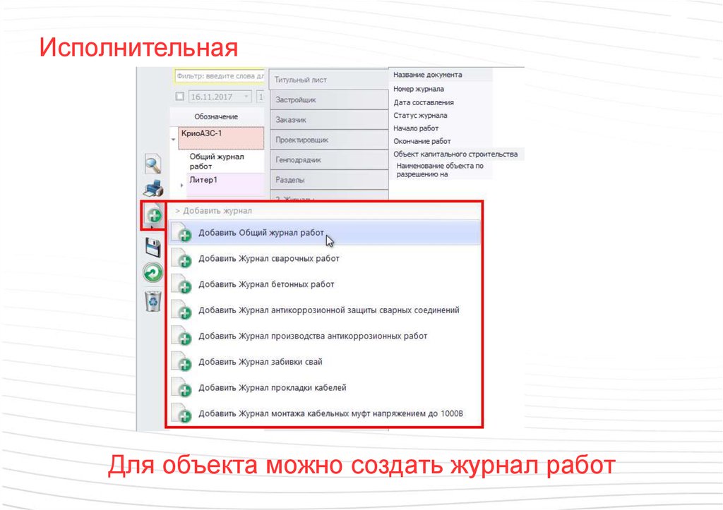 ИсполнительнаяДля объекта можно создать журнал работ