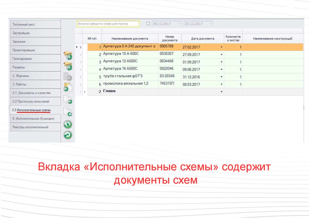 Вкладка «Исполнительные схемы» содержитдокументы схем