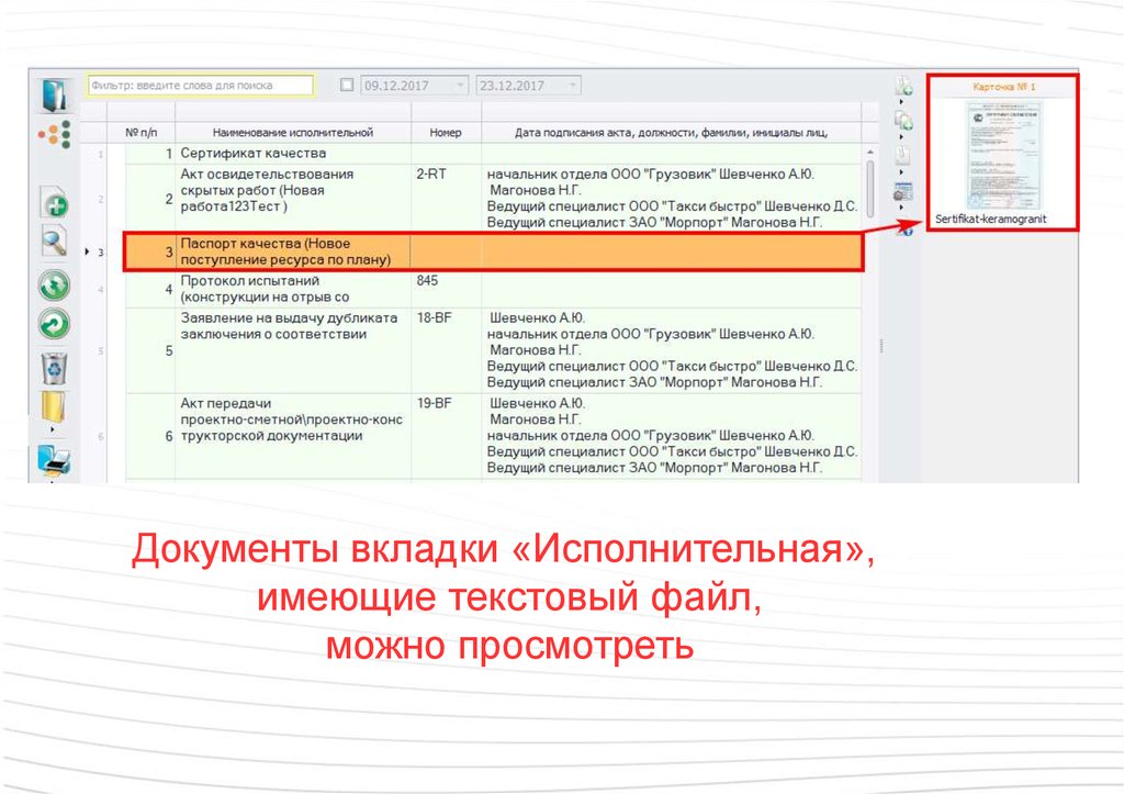 Документы вкладки «Исполнительная»,имеющие текстовый файл,