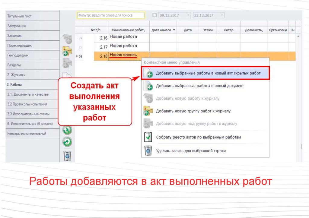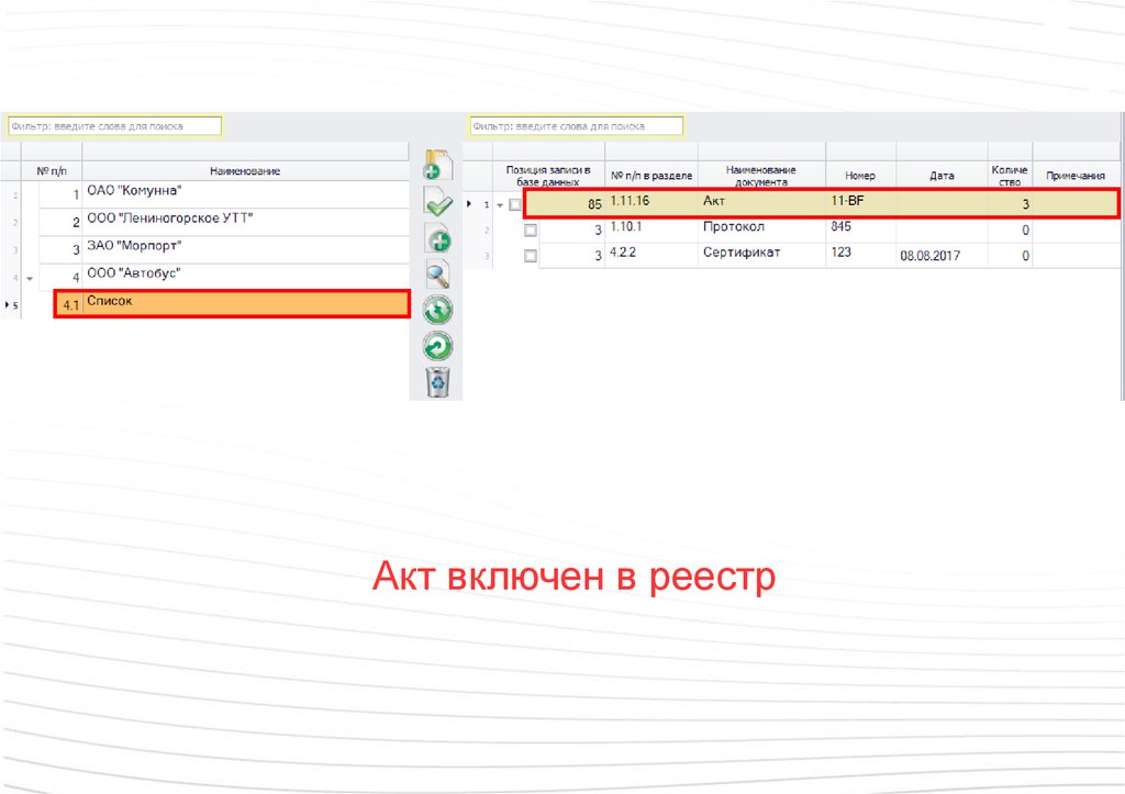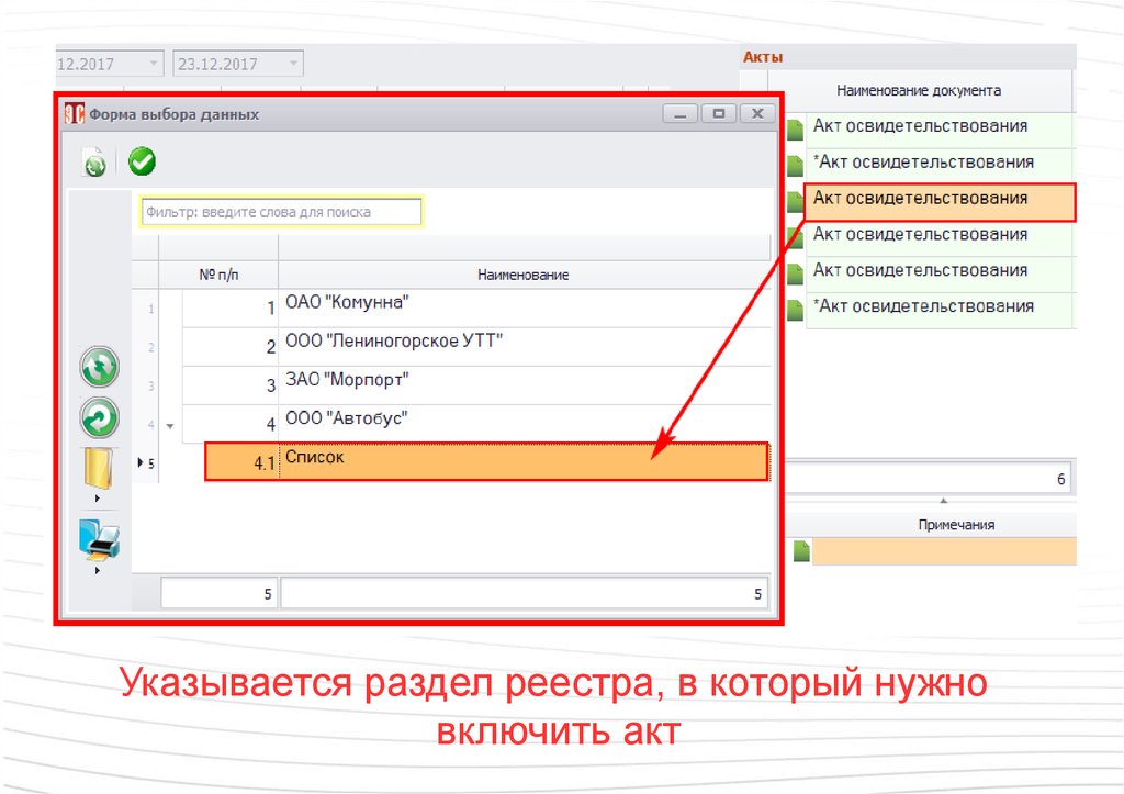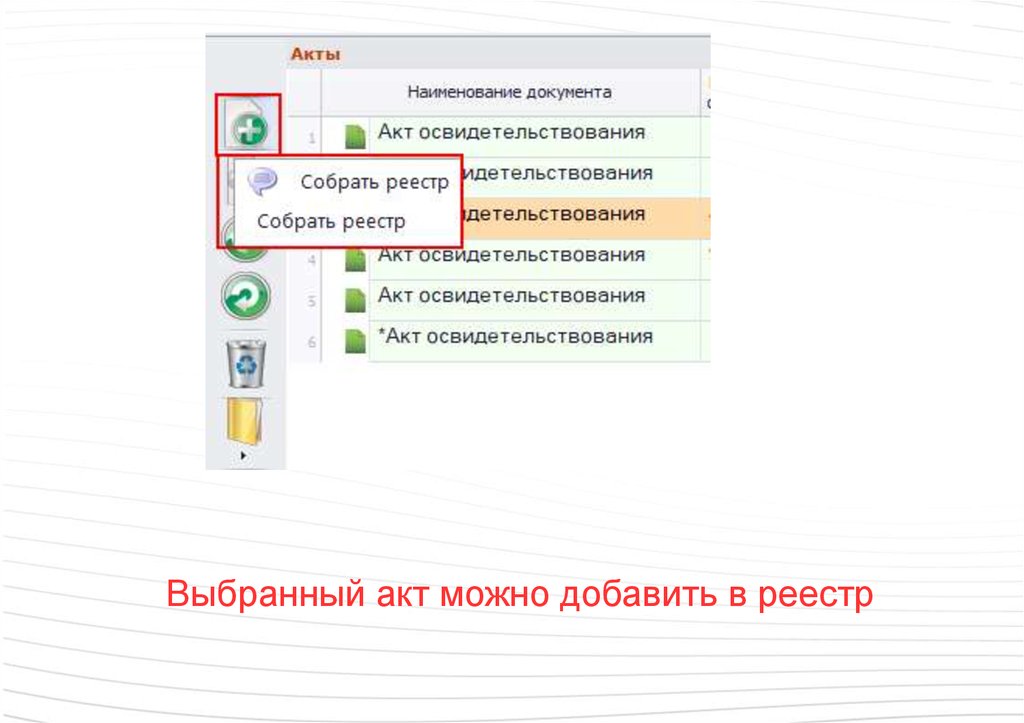 Выбранный акт можно добавить в реестр89.