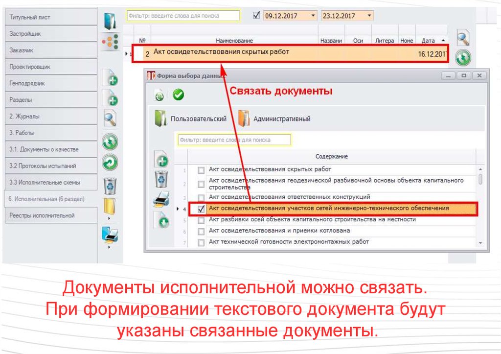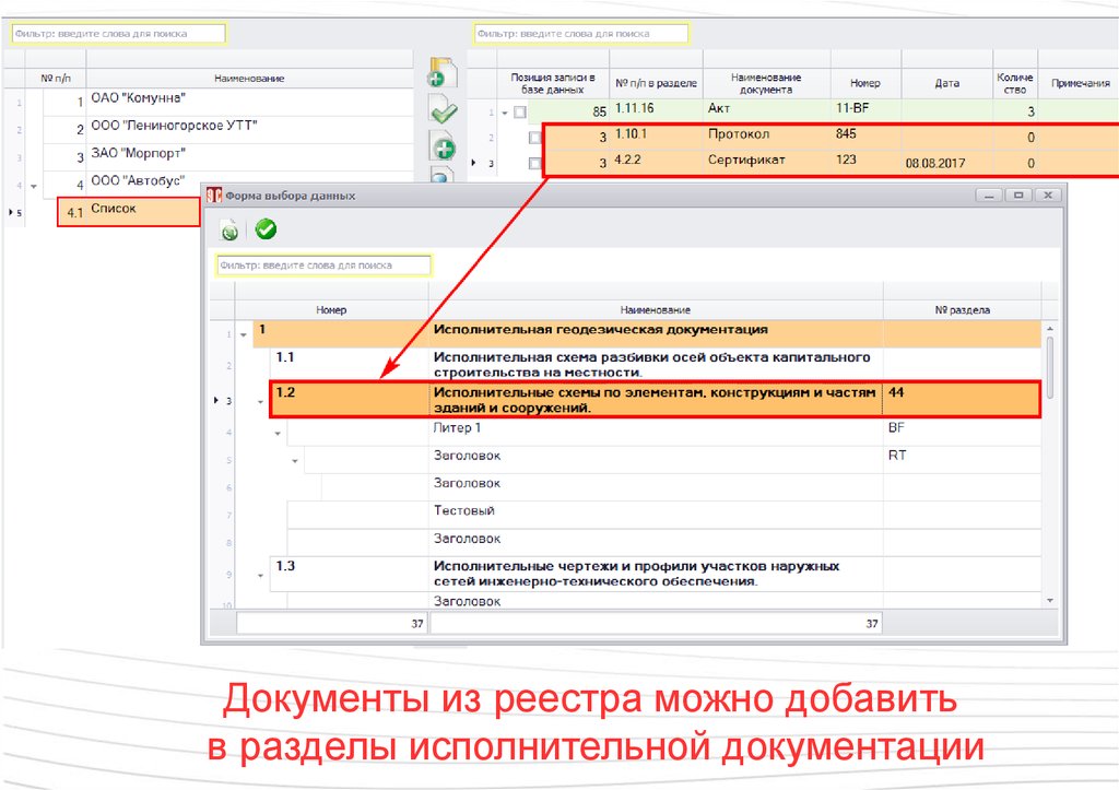 Документы из реестра можно добавитьв разделы исполнительной документации