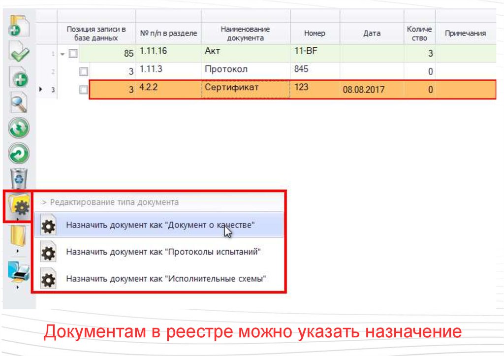 Документам в реестре можно указать назначение94.