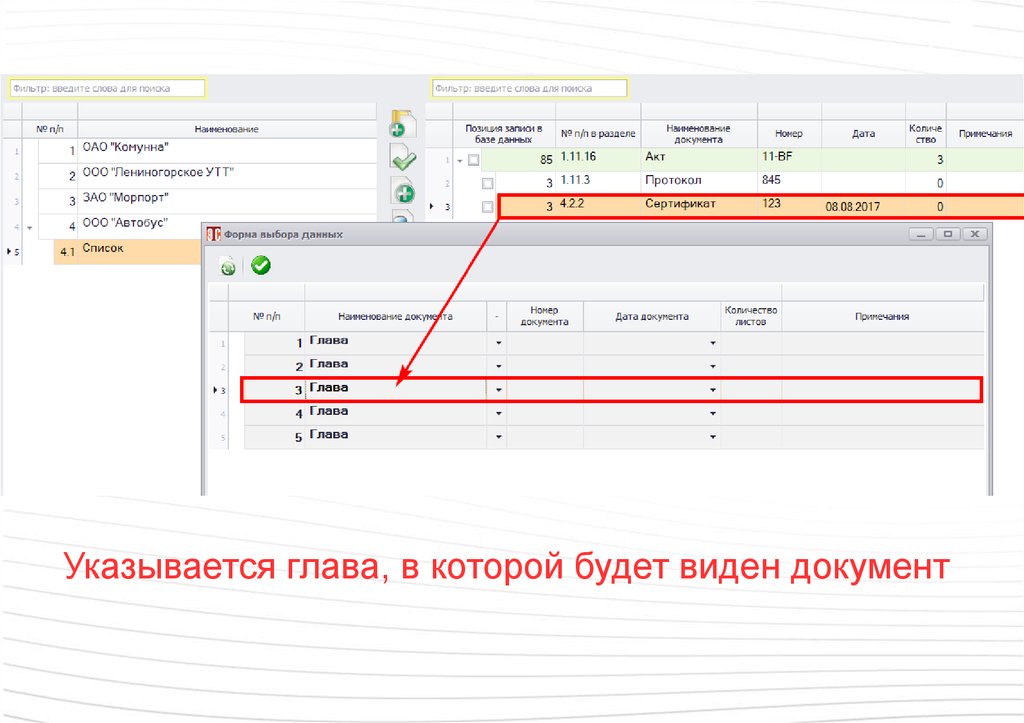 Указывается глава, в которой будет виден документ95.