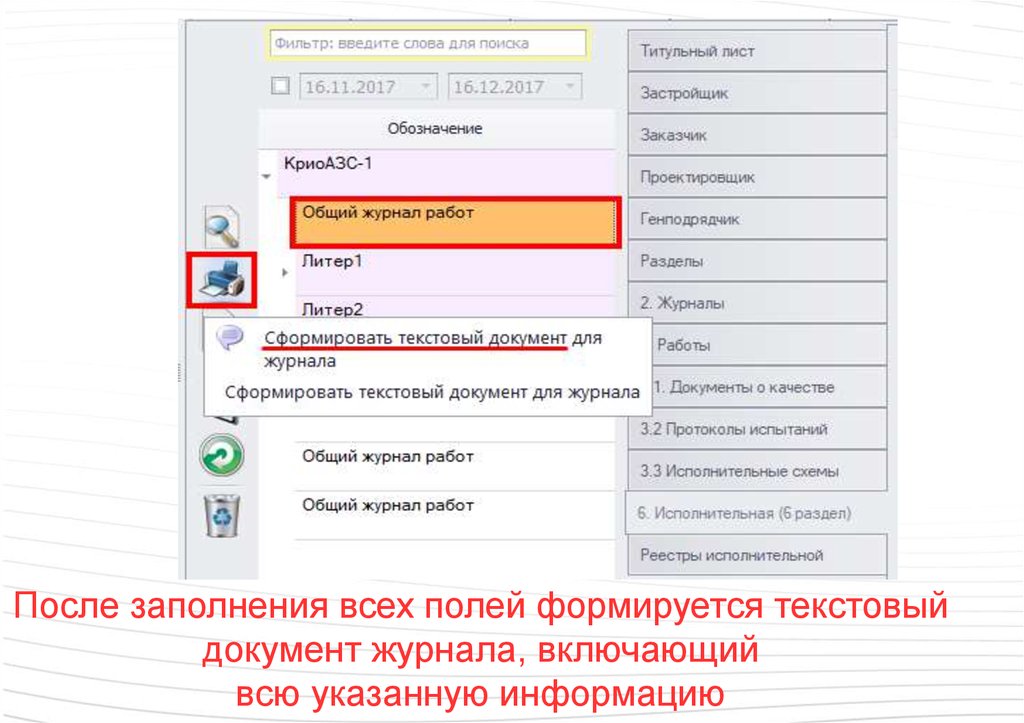 После заполнения всех полей формируется текстовыйдокумент журнала, включающий