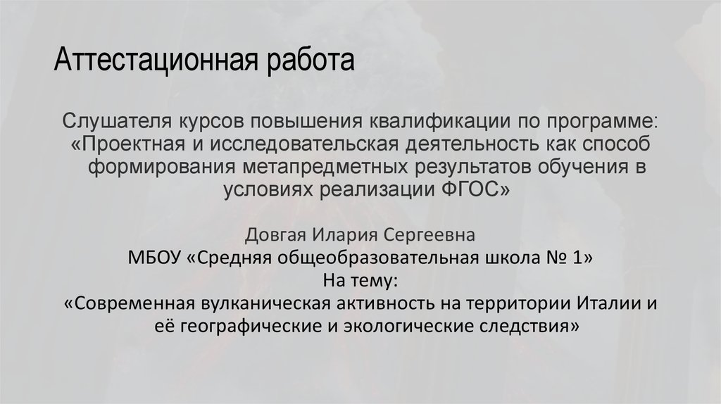 Аттестационная работа. Современная вулканическая активность на территории Италии и её географические и экологические следствия