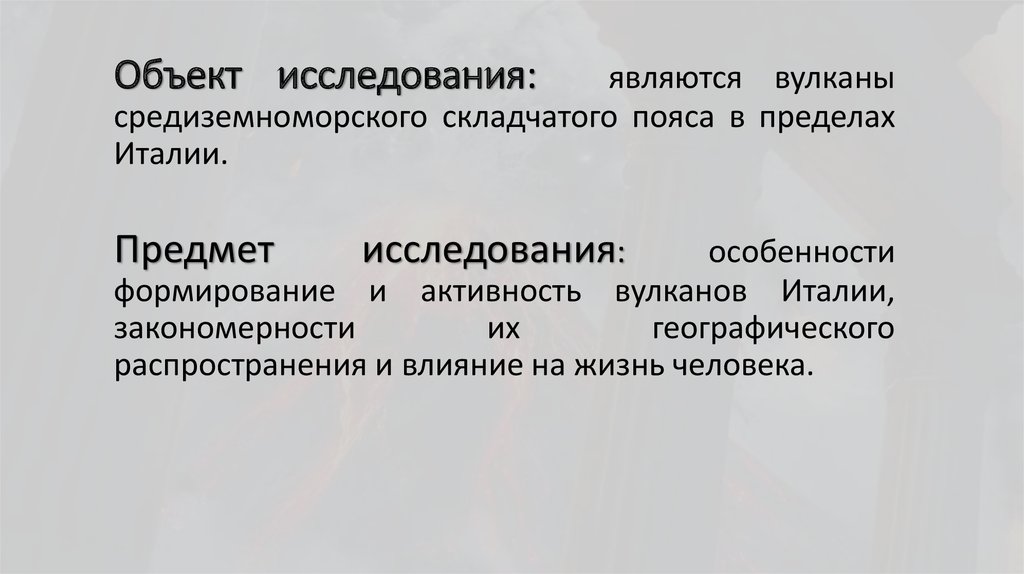 Объект исследования:являются вулканы