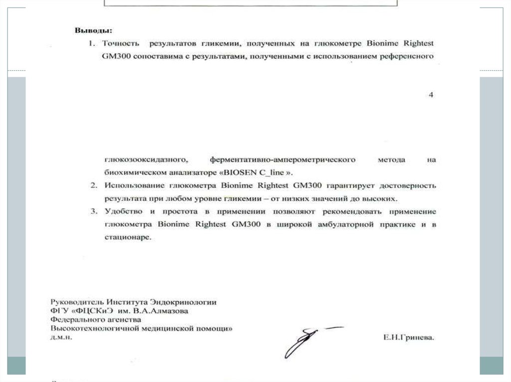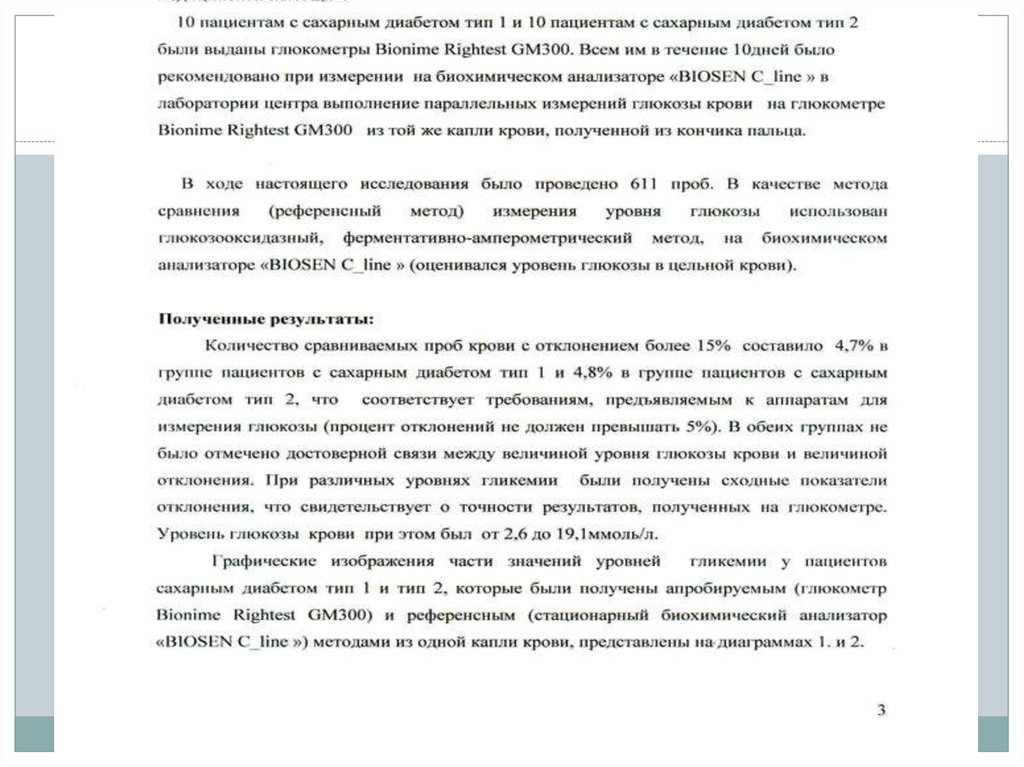 4. Нерандомизированное исследование глюкометра BIONIME RIGHTEST GM300 в сравнении с лабораторным исследованием на биохимическом