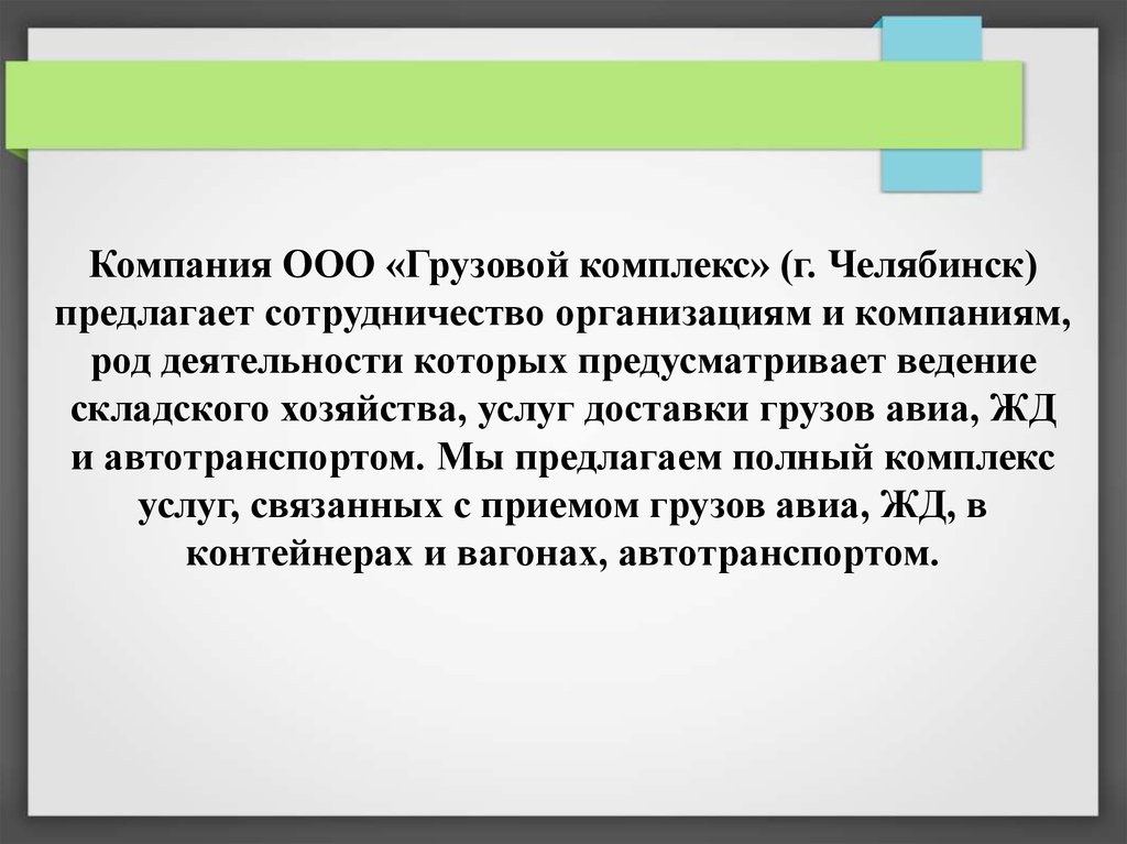 Компания ООО «Грузовой комплекс» (г. Челябинск)