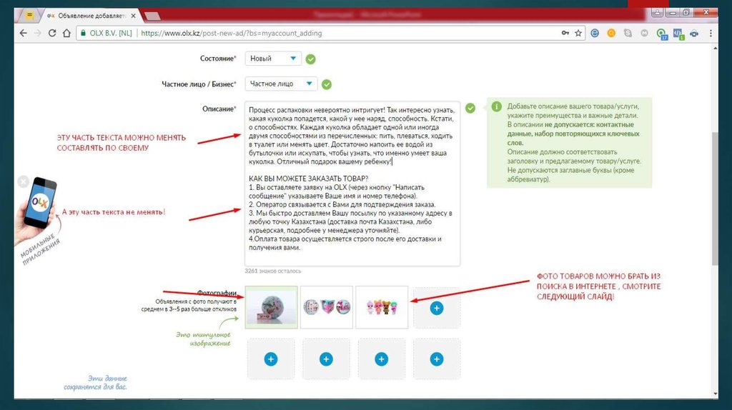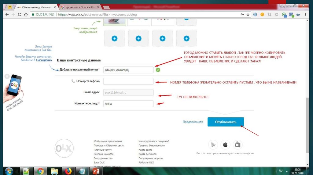 Буду показывать на примере сайта объявлений OLX.kz , сутьвезде одинаковая!
