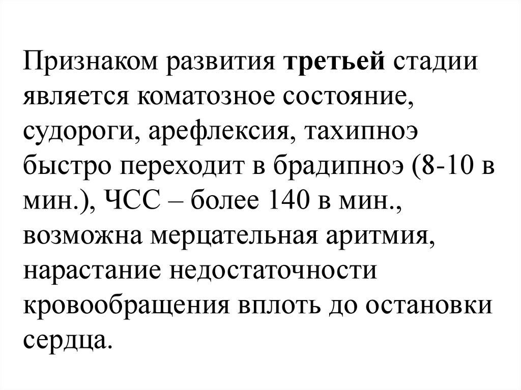 Признаком развития третьей стадииявляется коматозное состояние,