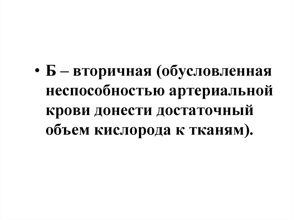 • Б – вторичная (обусловленнаянеспособностью артериальной