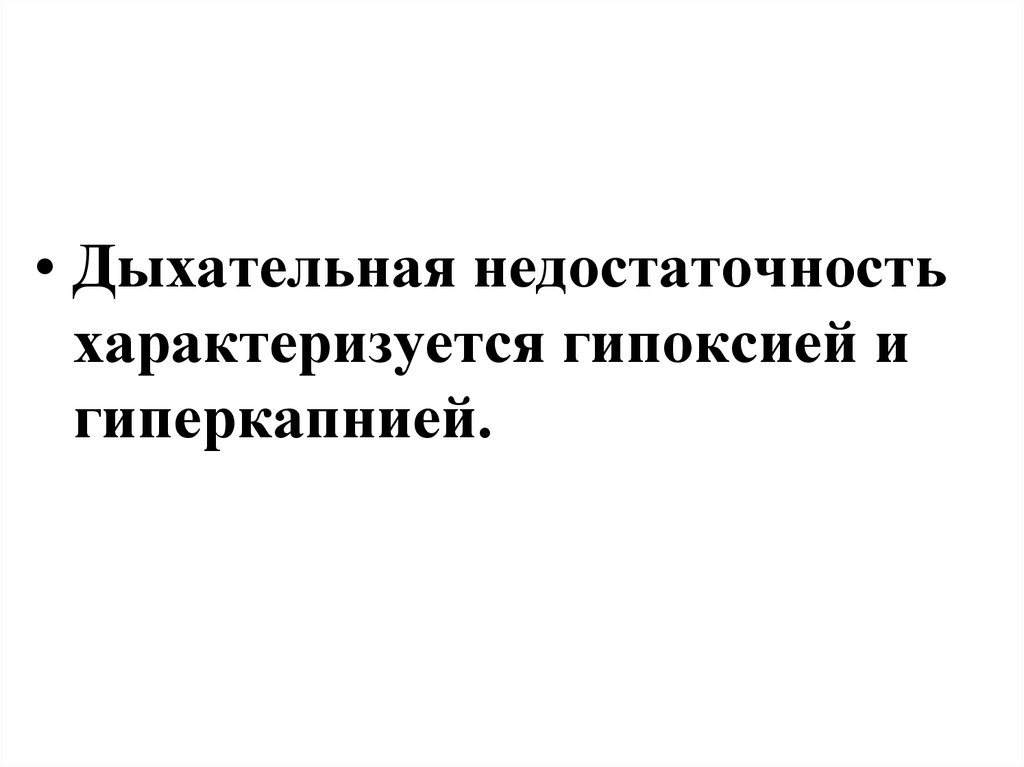 • Дыхательная недостаточностьхарактеризуется гипоксией и
