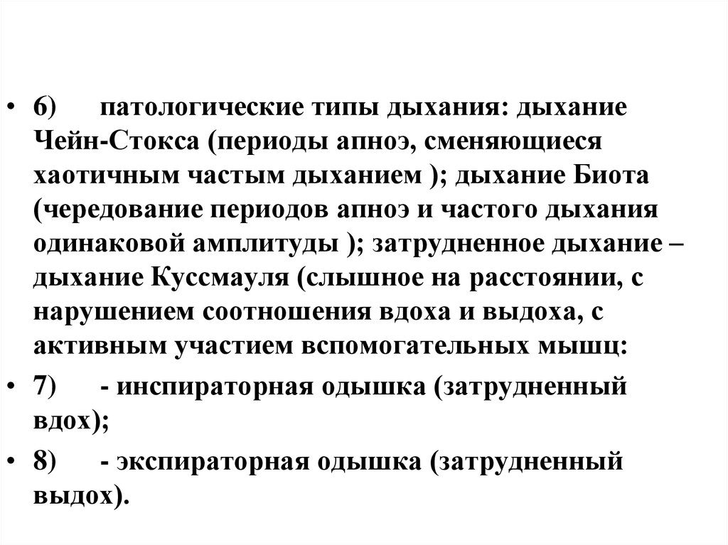 • 6)патологические типы дыхания: дыхание