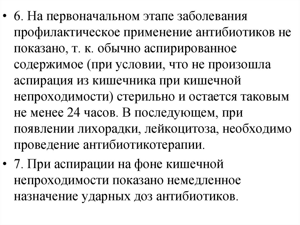 • 6. На первоначальном этапе заболеванияпрофилактическое применение антибиотиков не