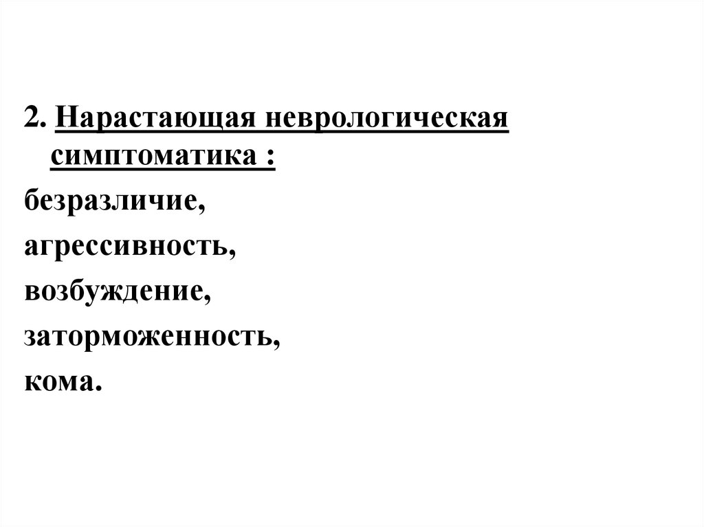2. Нарастающая неврологическаясимптоматика :