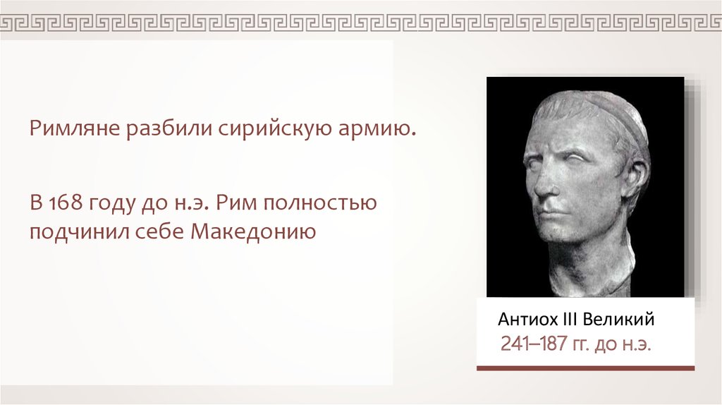 Римляне разбили сирийскую армию.В 168 году до н.э. Рим полностью