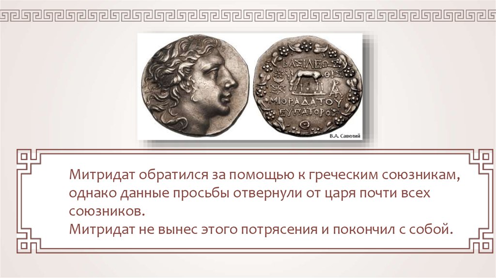 В.А. СавелийМитридат обратился за помощью к греческим союзникам,