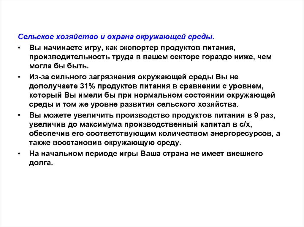 Игровая экономика производит энергоресурсы,продовольствие, промышленные товары.