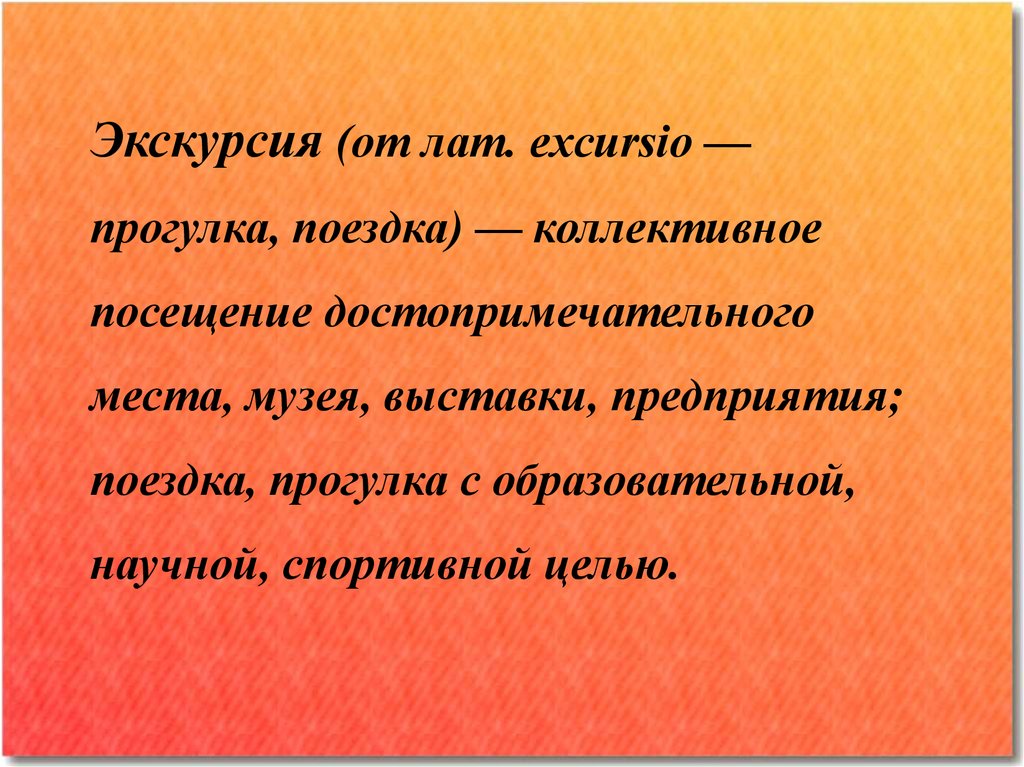 Экскурсия (от лат. excursio —прогулка, поездка) — коллективное
