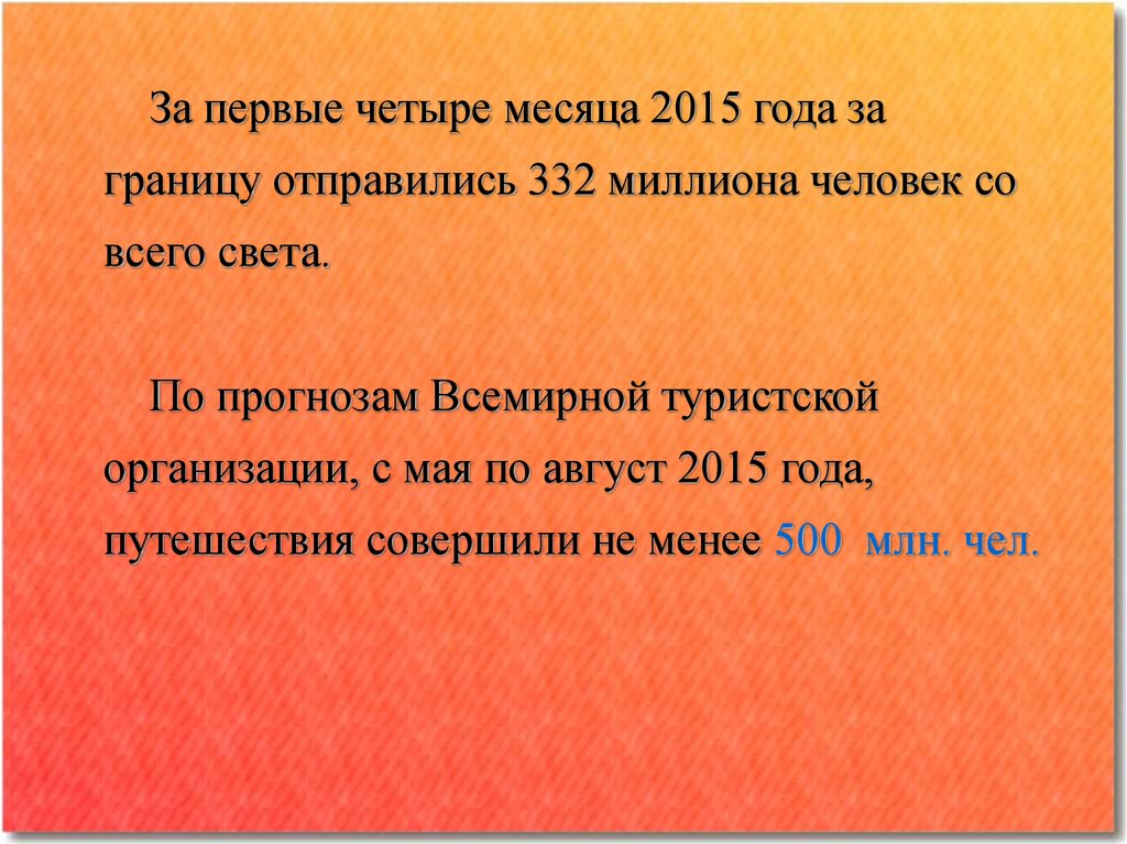 За первые четыре месяца 2015 года заграницу отправились 332 миллиона человек со