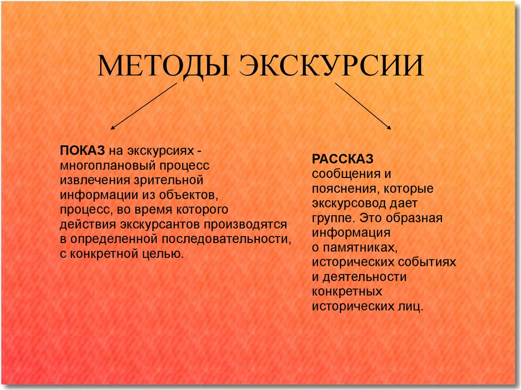 МЕТОДЫ ЭКСКУРСИИПОКАЗ на экскурсиях многоплановый процесс
