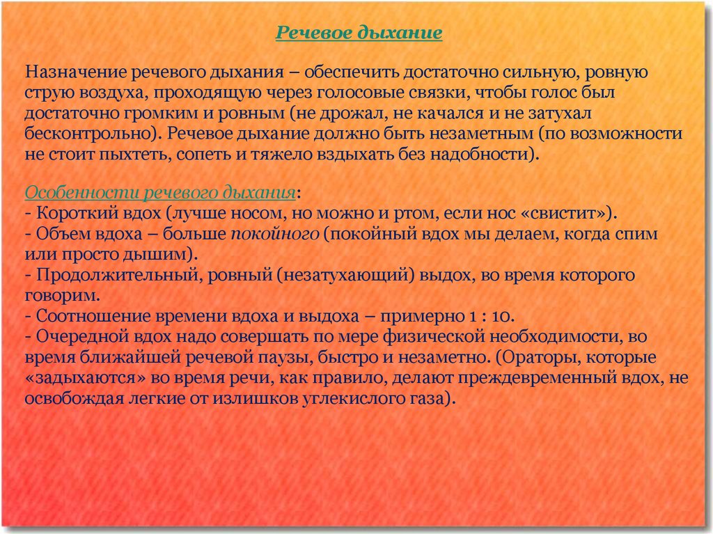 бесконтрольно). Речевое дыхание должно быть незаметным (по возможности