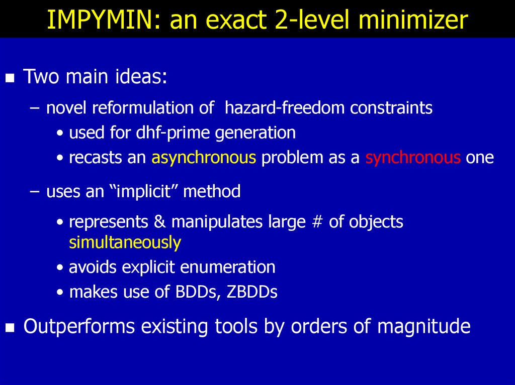 38. IMPYMIN Overview: Implicit Hazard-free 2-Level Minimizer