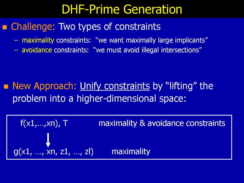 DHF-Prime Implicants = maximal implicants that do not intersect
