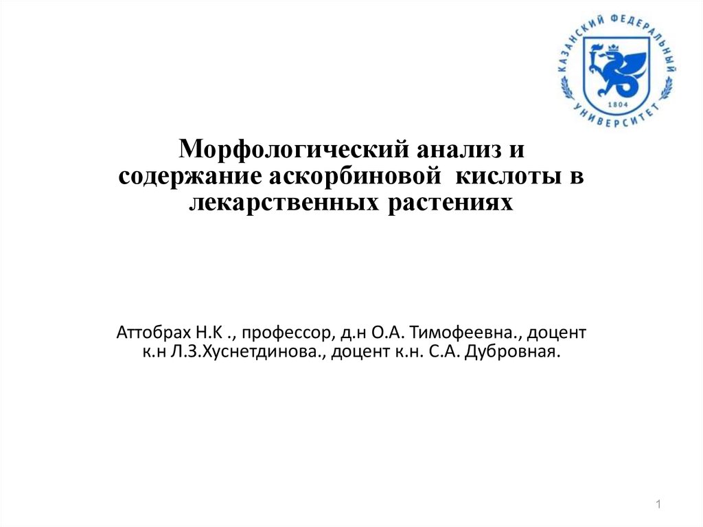 Морфологический анализ исодержание аскорбиновой кислоты в