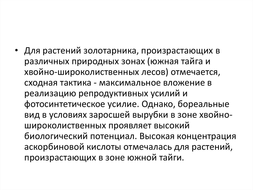 • Для растений золотарника, произрастающих вразличных природных зонах (южная тайга и