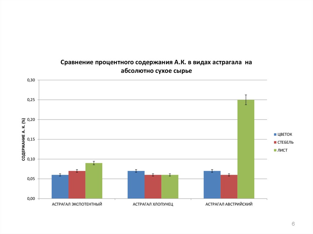 Сравнение процентного содержания А.К. в видах астрагала наабсолютно сухое сырье