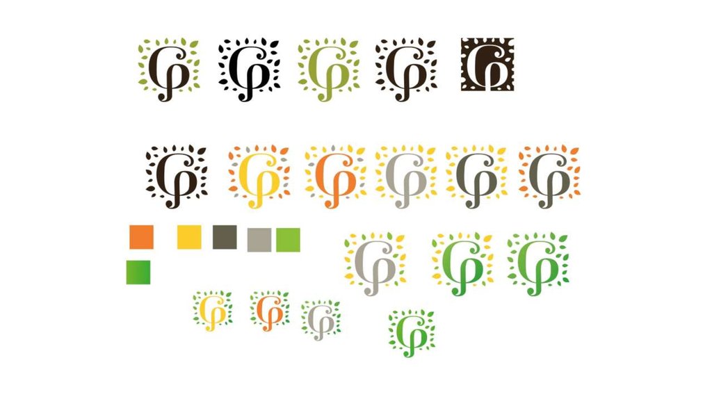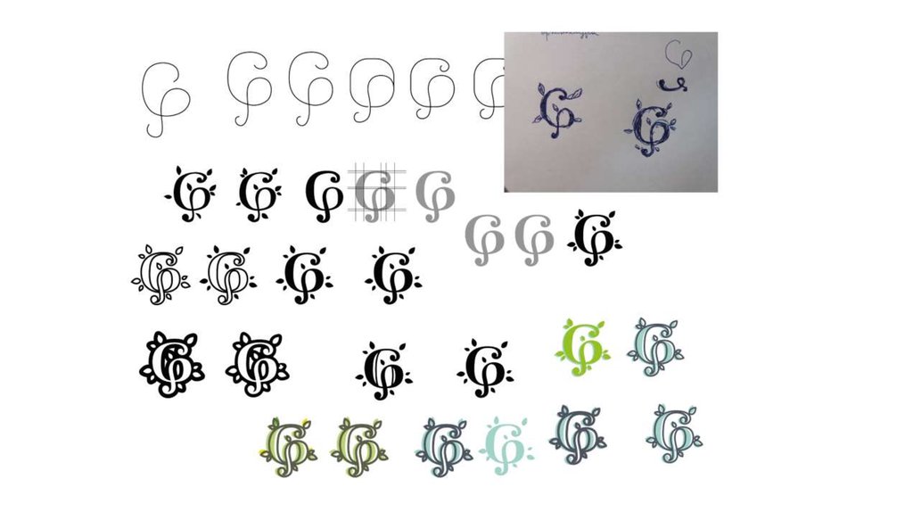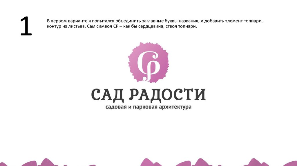 1В первом варианте я попытался объединить заглавные буквы названия, и добавить элемент топиари,