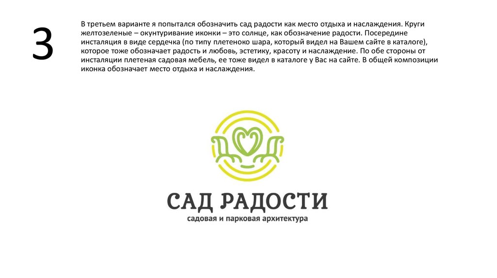 Разработка логотипа «Сад радости». Производство садовой и парковой архитектуры