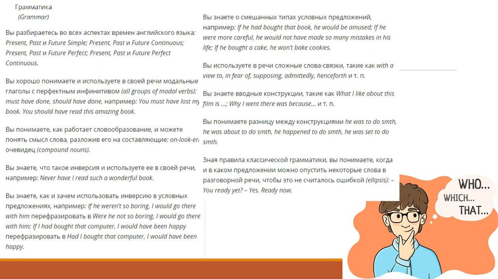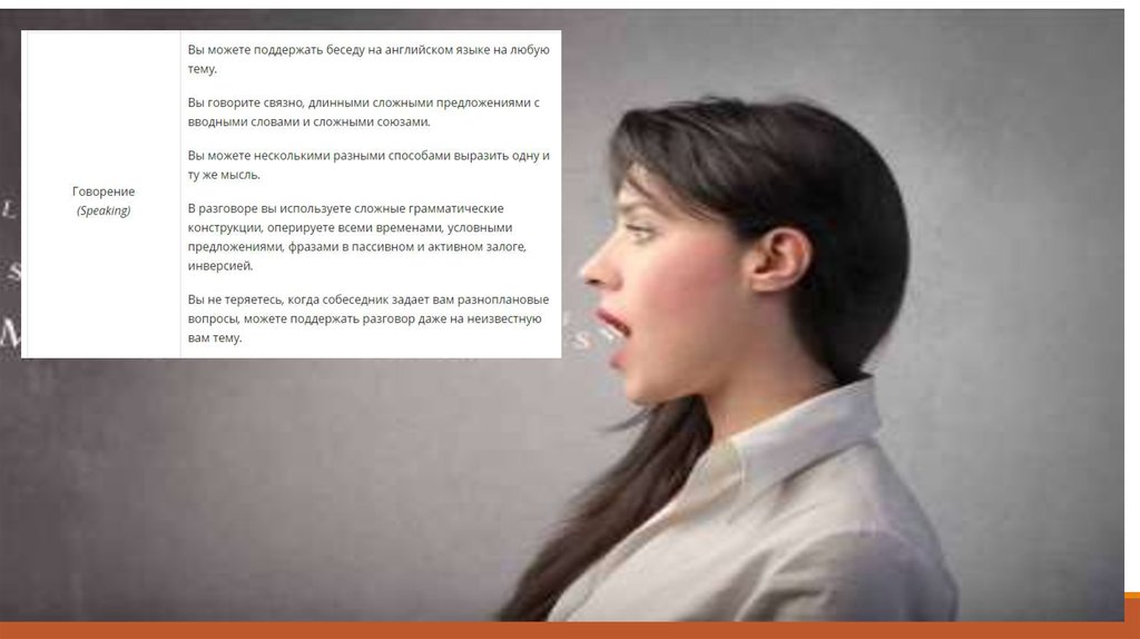 user (независимый, вы начинаете доносить практически любую мысль), Proficient user