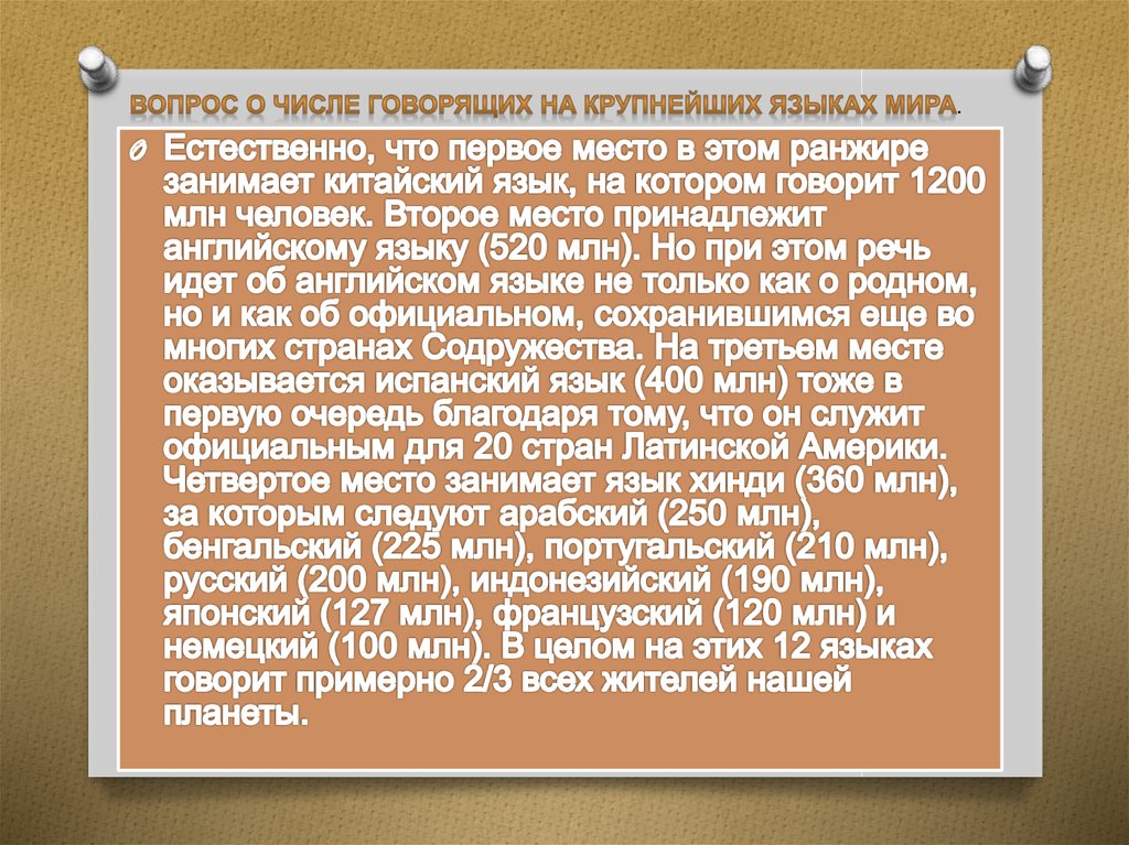 Крупнейшие народы и наиболее распространенные языки