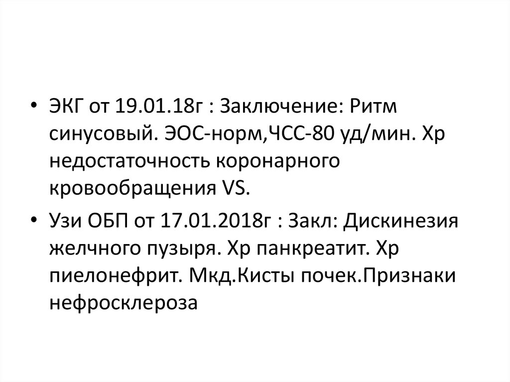 • ОАК от 22.01.2018г: в пределах нормы• ОАМ от 22.01.2018г : в пределах нормы