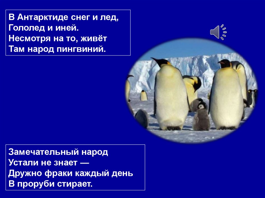 В Антарктиде снег и лед,Гололед и иней.
