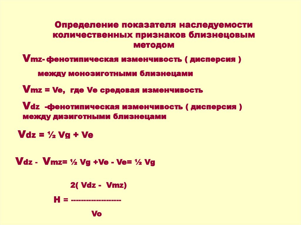 Количественные признаки. Близнецовый метод в оценке наследственности