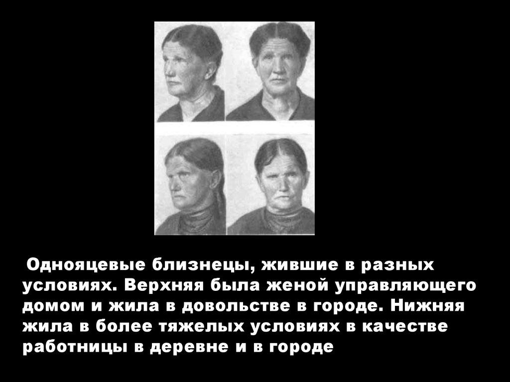 Однояцевые близнецы, жившие в разныхусловиях. Верхняя была женой управляющего