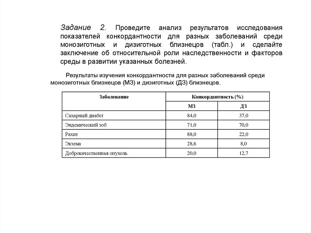 монозиготных и дизиготных близнецов (табл.) и сделайте