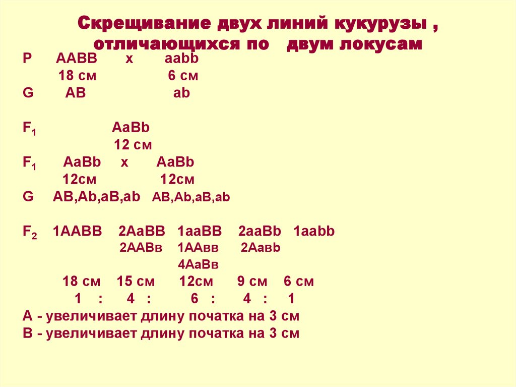 Скрещивание двух линий кукурузы,отличающихся по трем локусам