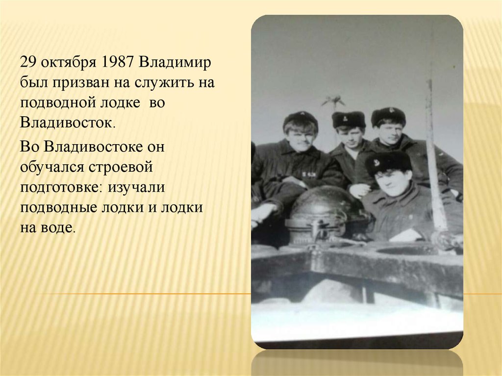 29 октября 1987 Владимирбыл призван на служить на