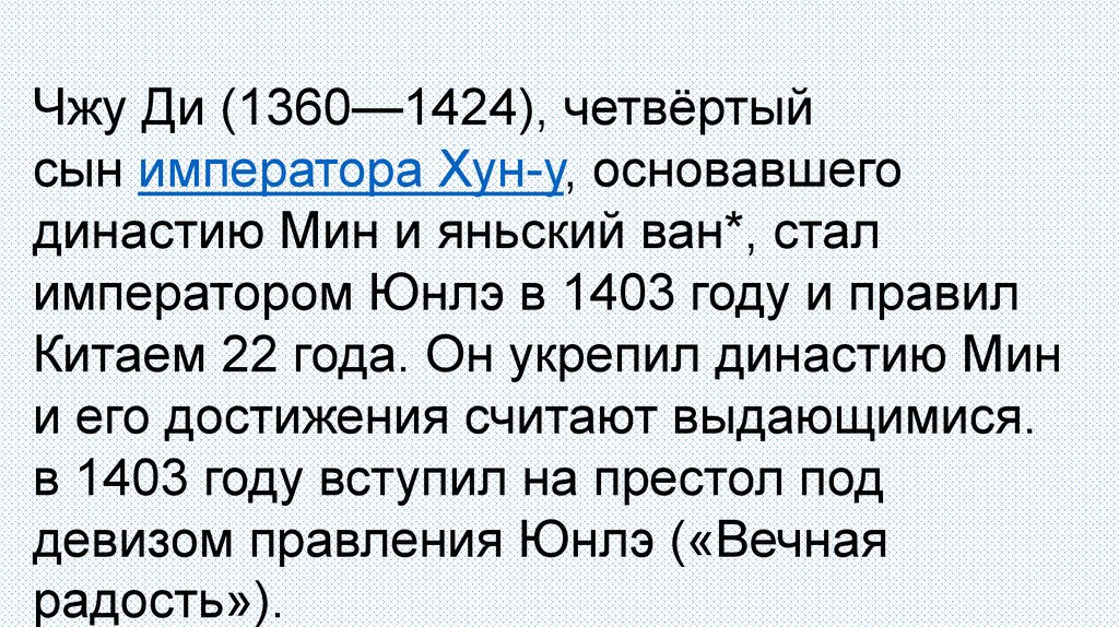 Чжу Ди (1360—1424), четвёртыйсын императора Хун-у, основавшего