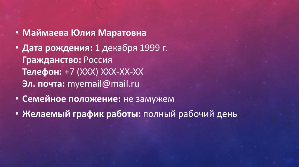 РЕЗЮМЕМАЙМАЕВОЙ ЮЛИИ