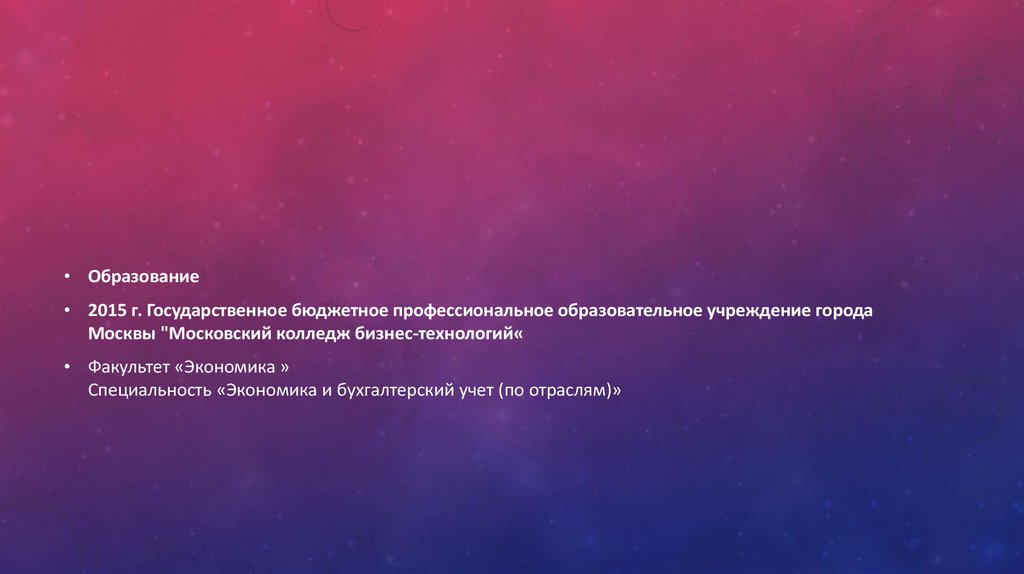 • Образование• 2015 г. Государственное бюджетное профессиональное образовательное учреждение города