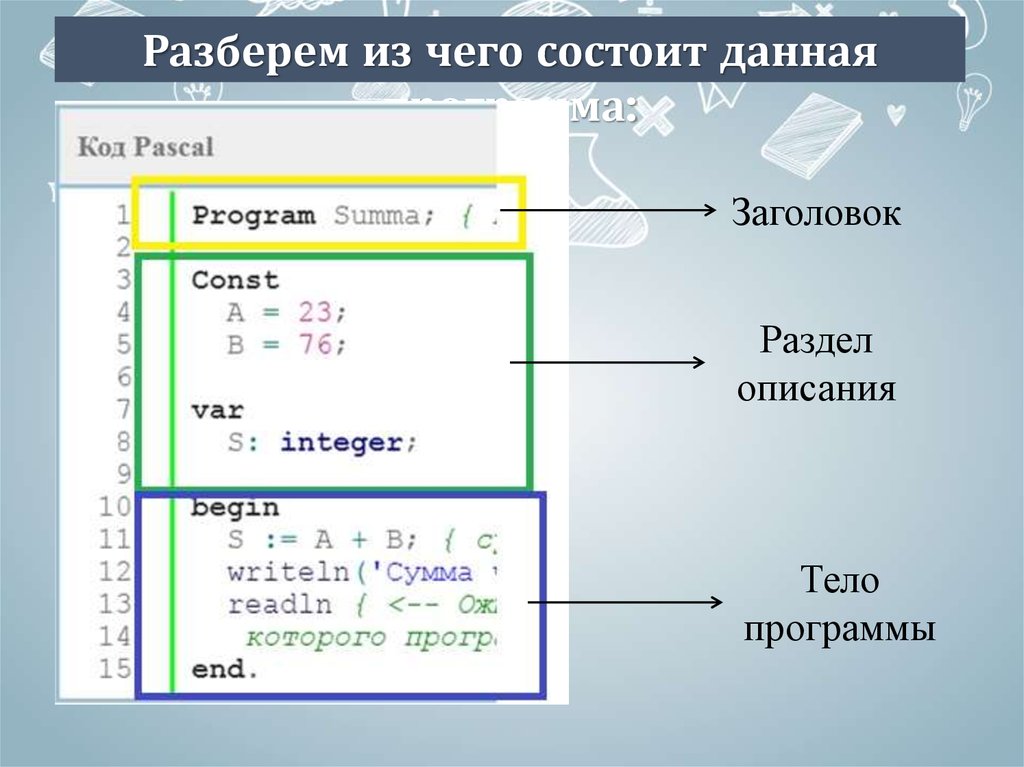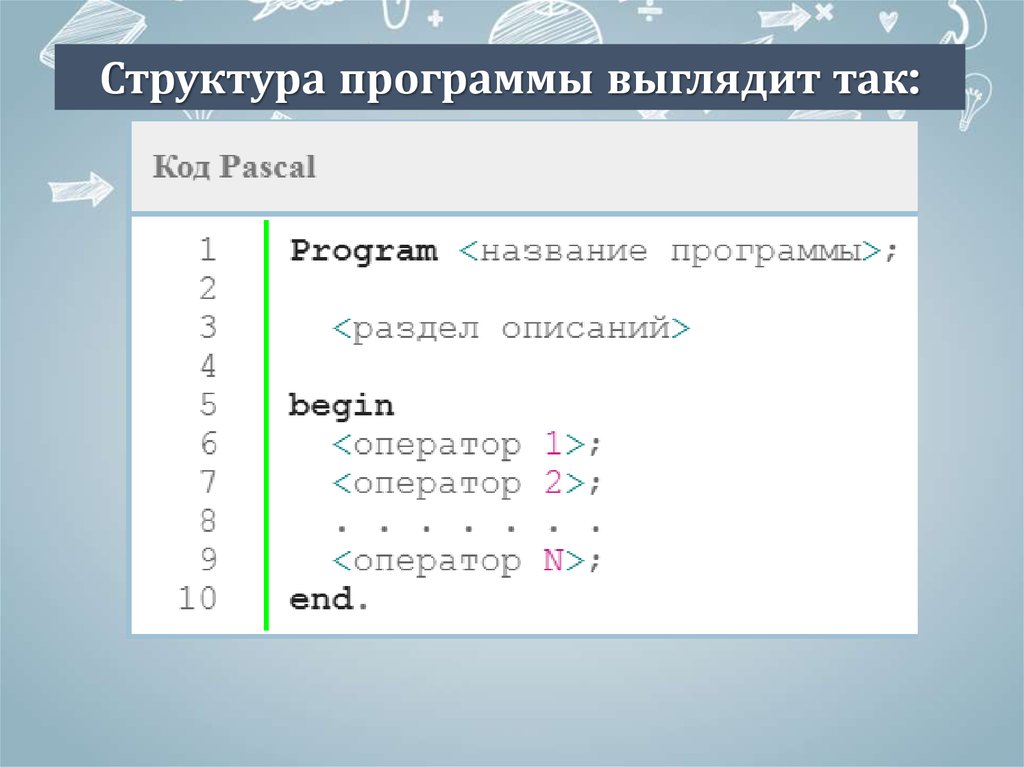 Из чего состоит программа на языкеPascal?это слово Program ,