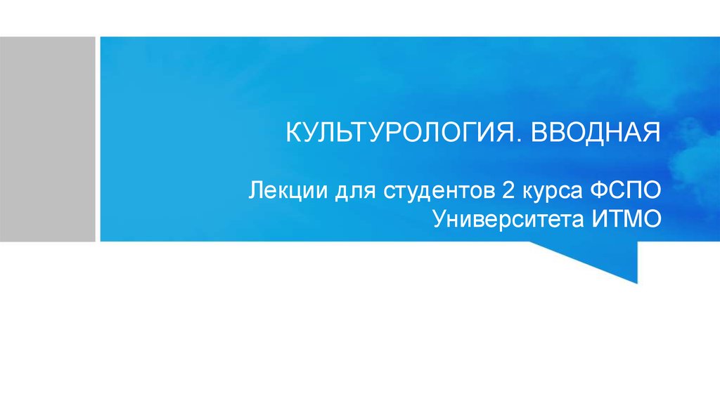 КУЛЬТУРОЛОГИЯ. ВВОДНАЯЛекции для студентов 2 курса ФСПО